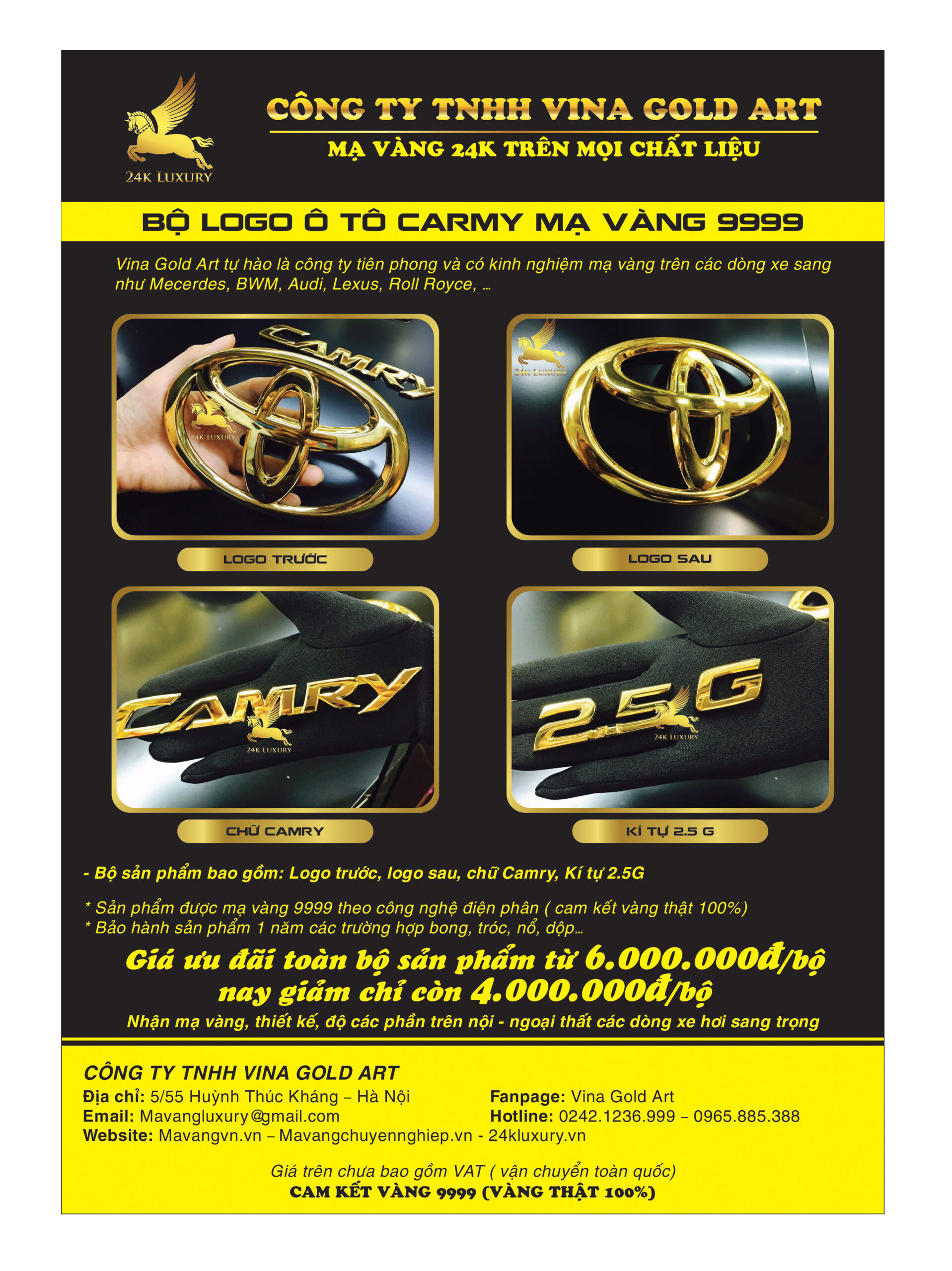 Bộ sản phẩm logo ô tô mạ vàng tại Vina Gold Art