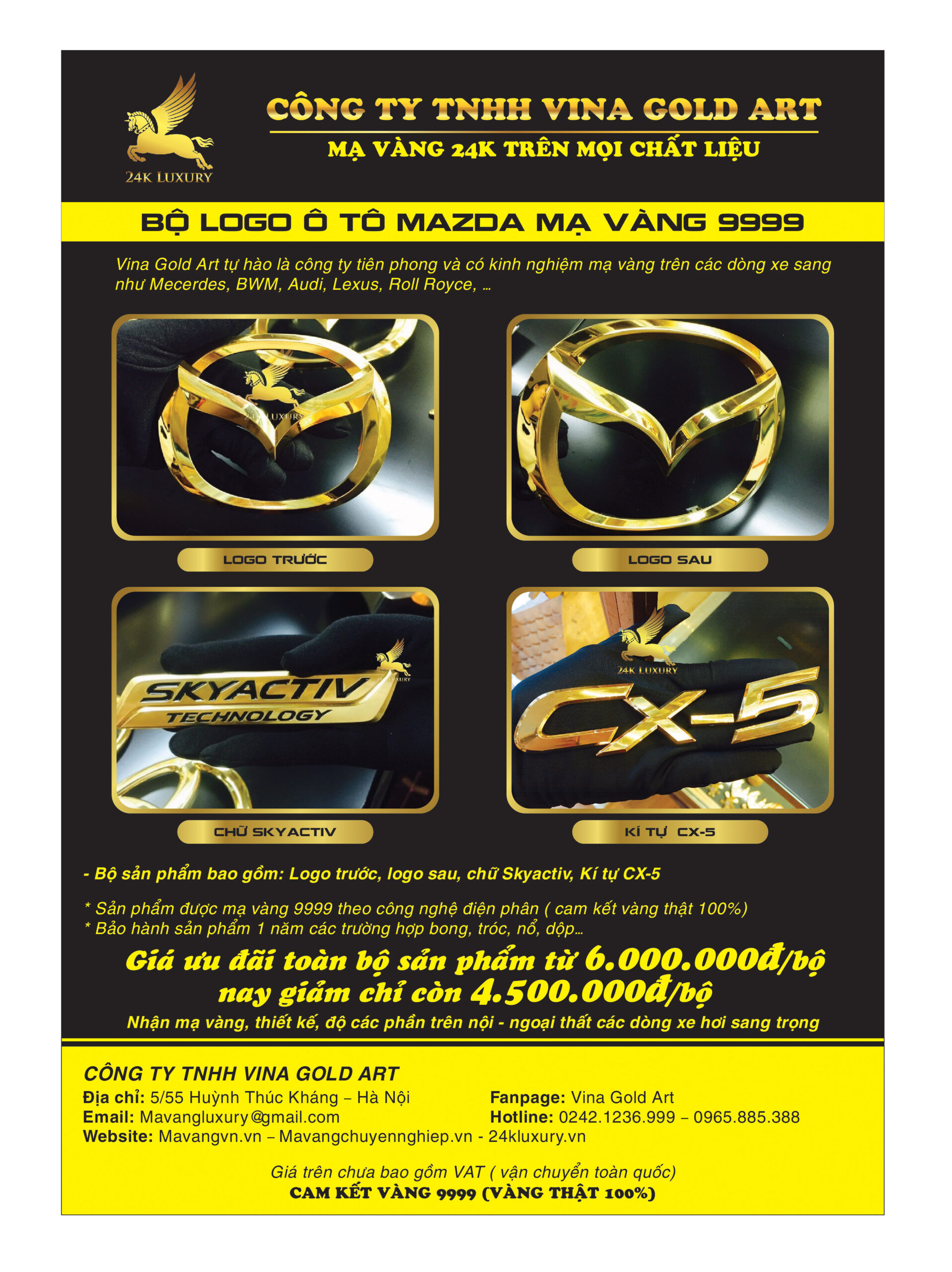 Bộ sản phẩm logo ô tô mạ vàng tại Vina Gold Art