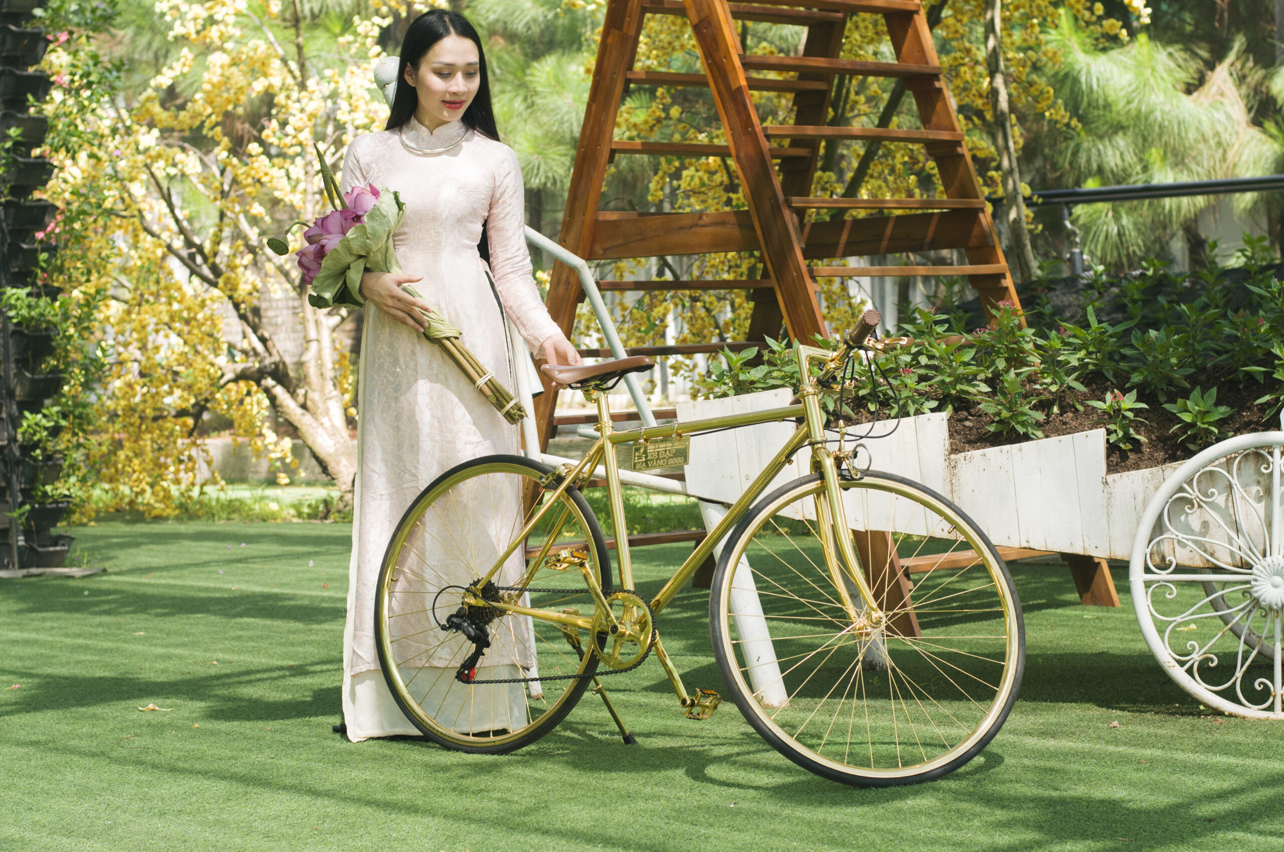 Thật duyên dáng khi nhìn thấy hình ảnh chiếc áo dài đang đi xe đạp mạ vàng chầm chậm trên phố, vừa thể hiện nét đẹp của người phụ nữ Việt Nam, vừa quảng bá được vẻ đẹp của chiếc áo dài.