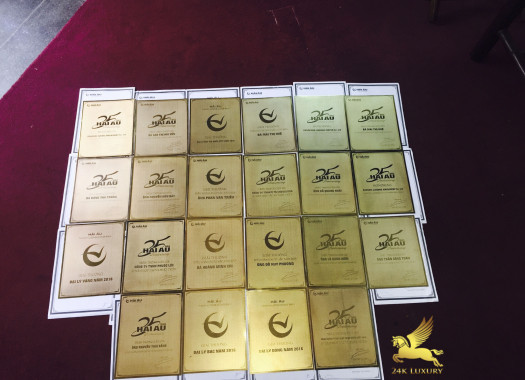 Lần này, Công ty Hải Âu đã mạ vàng 22 mẫu kỷ niệm chương tại Vina Gold Art. Sản phẩm hoàn thiện được công ty Hải Âu đánh giá cao, theo đúng mong đợi. Là một công ty mạ vàng có nhiều năm kinh nghiệm, các sản phẩm được làm với mọi tâm huyết của các nghệ nhân của công ty. Sản phẩm hoàn thành, khiến người nhận hiểu được rằng, đây sẽ là một món đồ giá trị đi cùng năm tháng. Đến với Vina Gold Art khách hàng có thể hoàn toàn yên tâm khi sử dụng dịch vụ tại đây. Công ty có thể mạ vàng trên những kỷ niệm chương với nhiều kích thước, chất liệu khác nhau.
