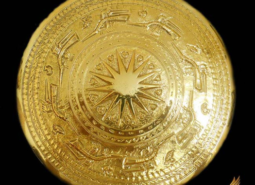 Trống đồng mạ vàng 24K là hình tượng gắn liền với người Việt cổ. Bắt đầu từ tâm trống và vòng tròn đồng tâm, đây là một vòng tròn vẽ mặt trời trong cùng và xung quanh là những cách điệu nghệ thuật chim lạc. Đây được xem là nhân sinh quan về cuộc đời của người Việt trong đó mặt trời là sự sống, đại diện cho đấng tối cao và cuộc sống của con người chính là sự nối tiếp tuần hoàn.