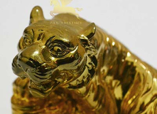 Bức tượng hổ sẽ được mạ vàng đen ở phần đầu và lưng hổ, chỉ có phần chân đế của bức tượng là được mà vàng 24K. Đó chính là nét độc đáo và tạo nên giá trị của sản phẩm mà bạn không thể tìm kiếm được ở đâu ngoài Vina Gold Art.
